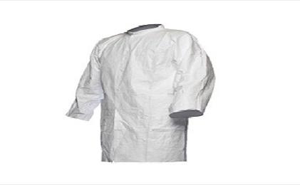 معطف مختبر مصنوع من مادة Tyvek® ويحتوي على 5 كبسولات إغلاق بالضغط. وهو متاح باللون الأبيض ومقاسات من MD إلى 2X.. بدون جيوب. ويشمل أساور أكمام مطاطية (غير قابلة للتشكل). وطبقات داخلية محاكة مصممة خصيصًا للاستخدام مع ملابس Tyvek®.