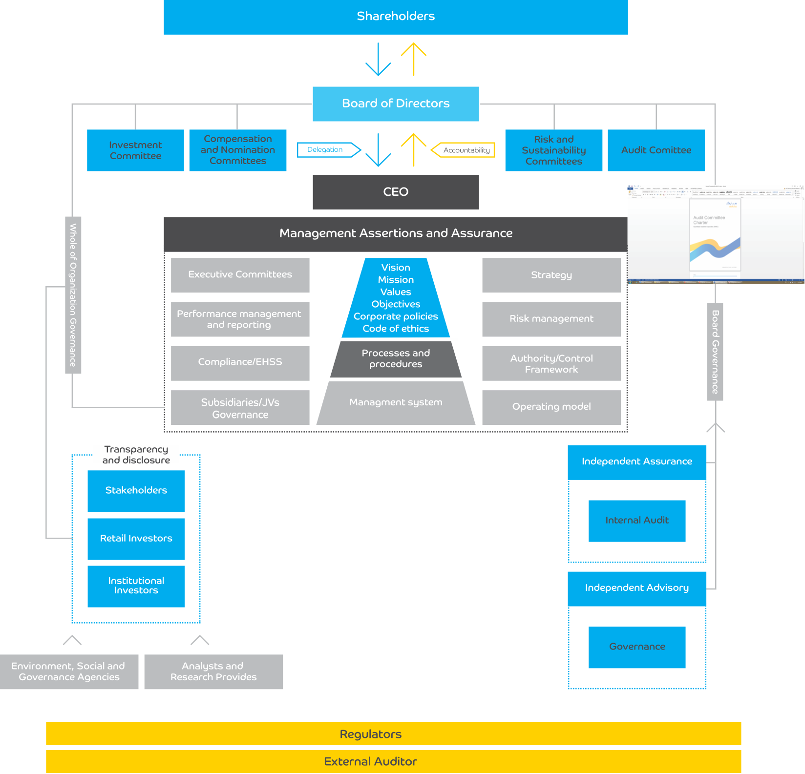 صممت (سابك) إطار حوكمة يراعي مواءمة جميع عناصره مع أهداف الشركة وغاياتها.