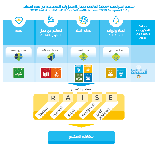 تسهم استراتيجية (سابك) العالمية بمجال المسؤولية الاجتماعية في دعم أهداف رؤية السعودية 2030 وأهداف الأمم المتحدة للتنمية المستدامة 2030 .