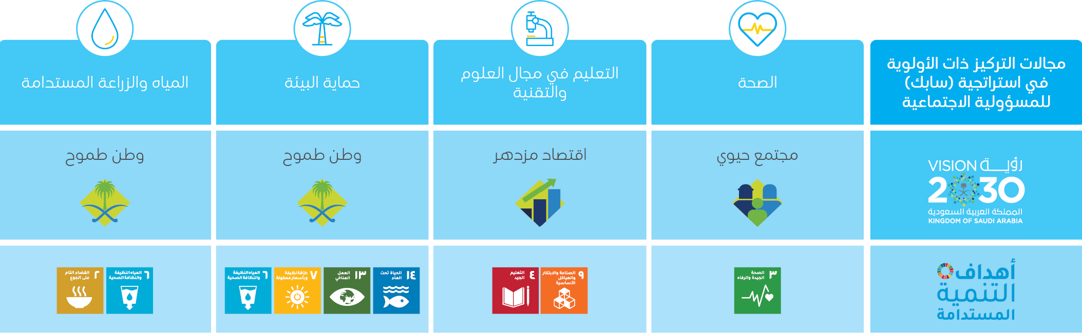 تدرك (سابك) مكانتها ودورها شركة عالمية رائدة، لديها عدد كبير من الموظفين الذين يعملون في مواقعها المنتشرة في 44 دولة حول العالم، ويعيشون في المجتمعات المحيطة بهذه المواقع. ولا تكتفي (سابك) بحضورها وعملها في هذه المجتمعات، بل تعُد نفسها جزءاً لا يتجزأ منها. ويسهم نهجنا في ترسيخ ثقافة العطاء المجتمعي والعمل التطوعي، بما يتسق مع شعارنا (كيمياء وتواصلTM).