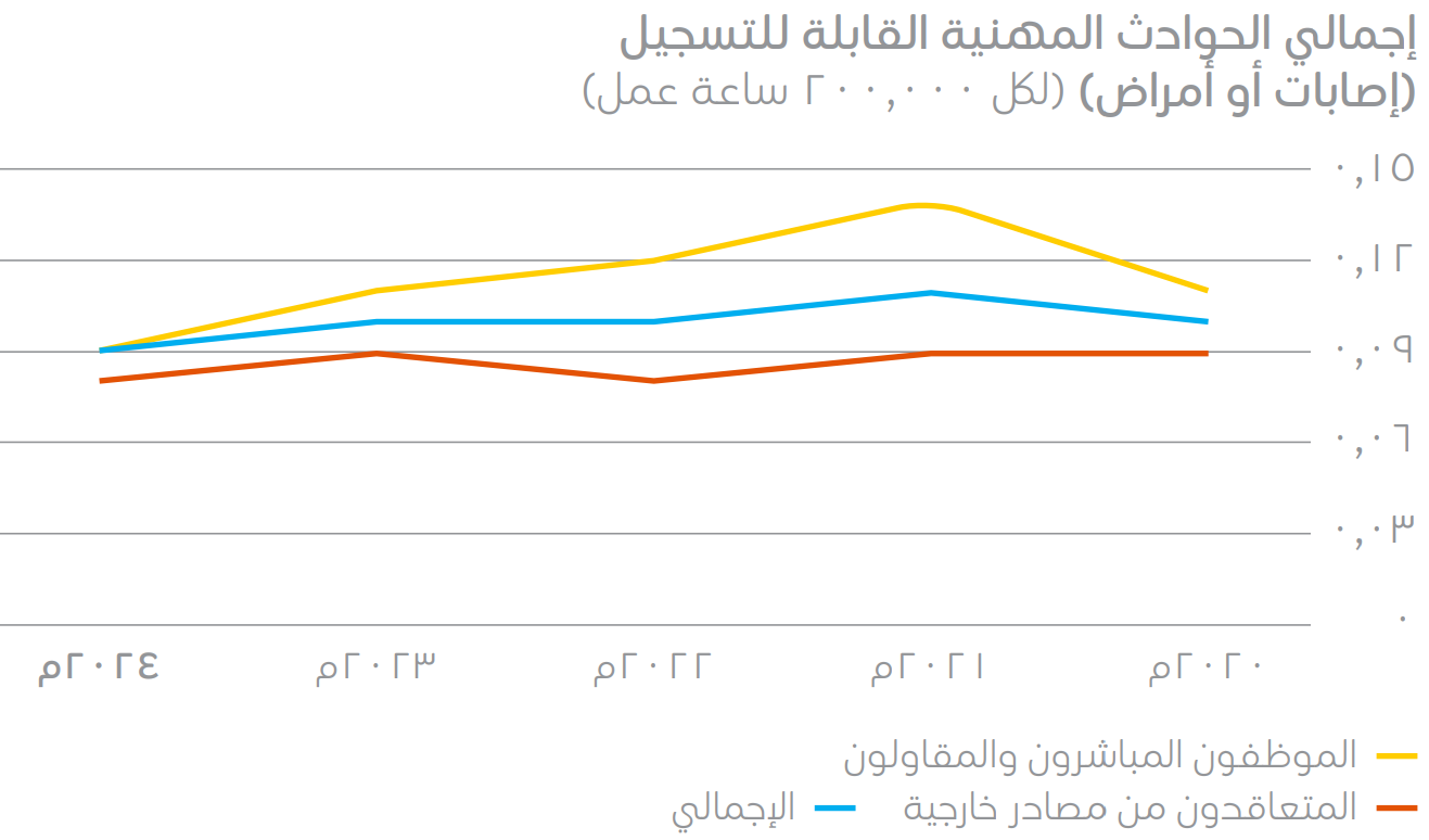 شهد إجمالي معدل الحوادث والأمراض القابل للتسجيل تحسناً بنسبة 10% مقارنة بعام 2023م.