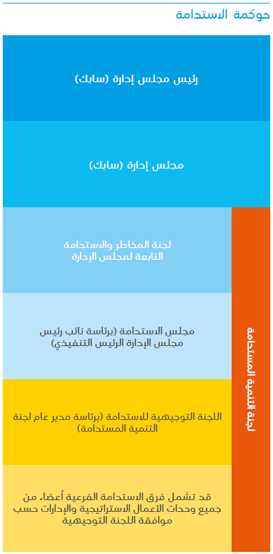 - مجلس الاستدامة)، الذي يحدد رؤية (سابك) للاستدامة والمعني بالمساءلة عن تحقيق أهدافنا المعلنة ومستوى أدائنا).