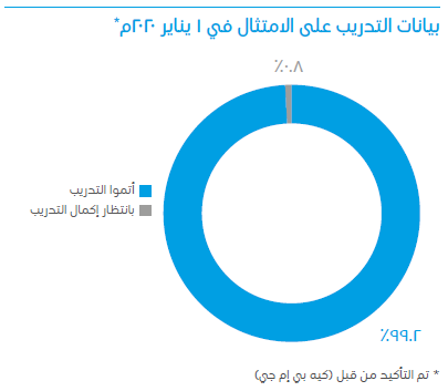 يضع ميثاق أخلاقيات المهنة في(سابك) مبادئ واضحة محددة تنطبق على جميع موظفينا، حيث نقوم بإبلاغهم بها بانتظام. وقد تم إكمال البرامج التدريبية الخاصة بالامتثال لميثاق أخلاقيات المهنة من قبل موظفي (سابك) و 35 شركة تابعة لها. بلغت النسبة الإجمالية للموظفين الذين تلقوا تدريبًا على الامتثال عبر الإنترنت 99.2% وذلك حتى 1 يناير 2021م.