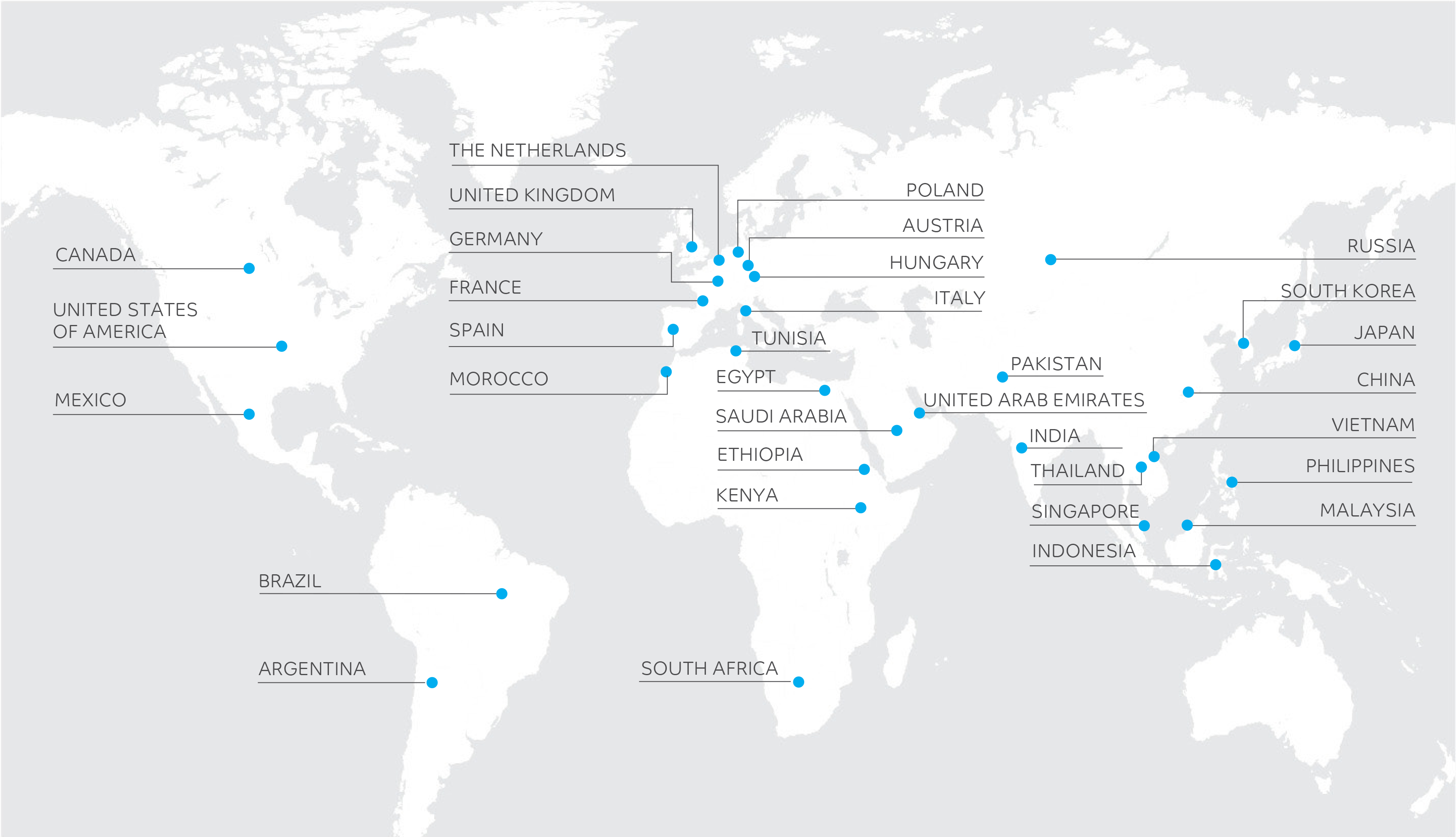 امتدت تأثيرات برامجنا في مجال الصحة إلى 19 دولة؛ المملكة العربية السعودية والإمارات العربية المتحدة والصين وفيتنام والولايات المتحدة الأمريكية والأرجنتين والبرازيل والهند وهولندا وألمانيا وإسبانيا والمملكة المتحدة والنمسا وإيطاليا وبولندا والمجر وفرنسا وكرواتيا وبلجيكا.