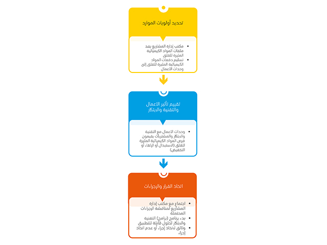 • من خلال أداة (أكوليد) الخاصة بإدارة باقة المشاريع في (سابك) يمكن لإدارة الإشراف على المنتجات التعاون مع إدارة التقنية والابتكار في الشركة للمساعدة في تحديد الأخطار والمخاطر الجديدة المحتملة في وقت مبكر من تطوير المشروع.