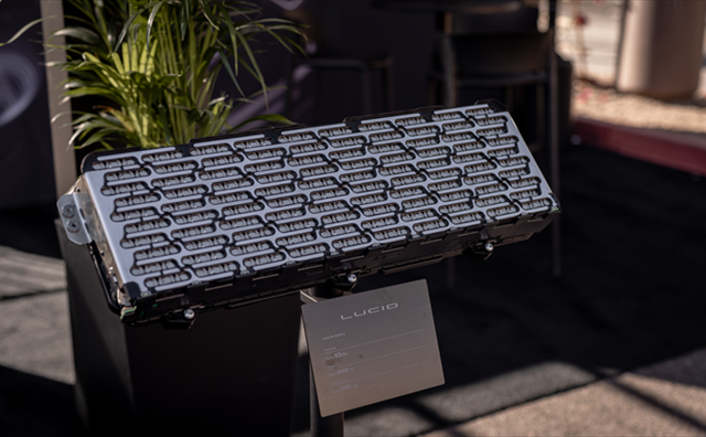 The Lucid Air battery pack uses modules with 300 cylindrical lithium-ion cells in a 21-700 format, arranged in a 10S30P configuration, producing around 42 volts per module. Efficient thermal management is ensured through end-cooling plates that dissipate heat. Lucid's proprietary bus bar design minimizes resistance and optimizes energy transfer. This design enhances the battery's efficiency, safety, and overall performance, contributing to the vehicle’s extended range.