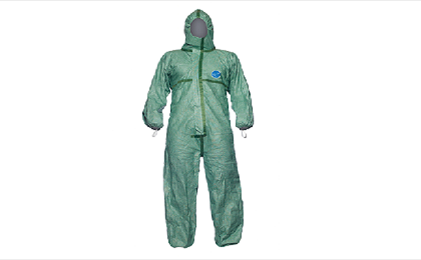 Hooded coverall available in green. It provides chemical and secondary flame protection in a lightweight garment. Tychem® 2000 SFR garments are intended to be worn over primary flame-resistant garments. In the event that a flash fire occurs, they won't ignite and won't contribute to additional burn injury if appropriate flame-resistant personal protective equipment, such as DuPont™ Nomex®, is worn beneath.