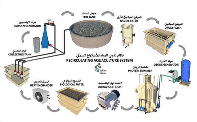 The Saudi Aquaculture System Factory (Saqua) maunufactures and operates closed water treatment and recycling systems for high biomass fish production projects in freshwater, salty water and aquaponics systems.