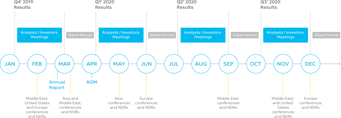 We aim to have a world-class engagement with all participants of Capital Markets. Our approach is to build sustainable relationships with all Capital Markets participants to communicate the SABIC investment story, growth strategy and how SABIC will build value over time. We aim to implement our approach structurally and consistently.