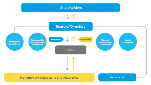 Our Corporate governance goes beyond meeting compliance requirements. SABIC has developed its own corporate governance framework (the 'Framework'), as shown in the diagram above, which sets out roles, responsibilities, methods of decision making and accountability in line with the Board approved delegation policy. It also includes the main governance bodies of the Company, and clarifies how they interrelate, integrate, and coordinate their activities.