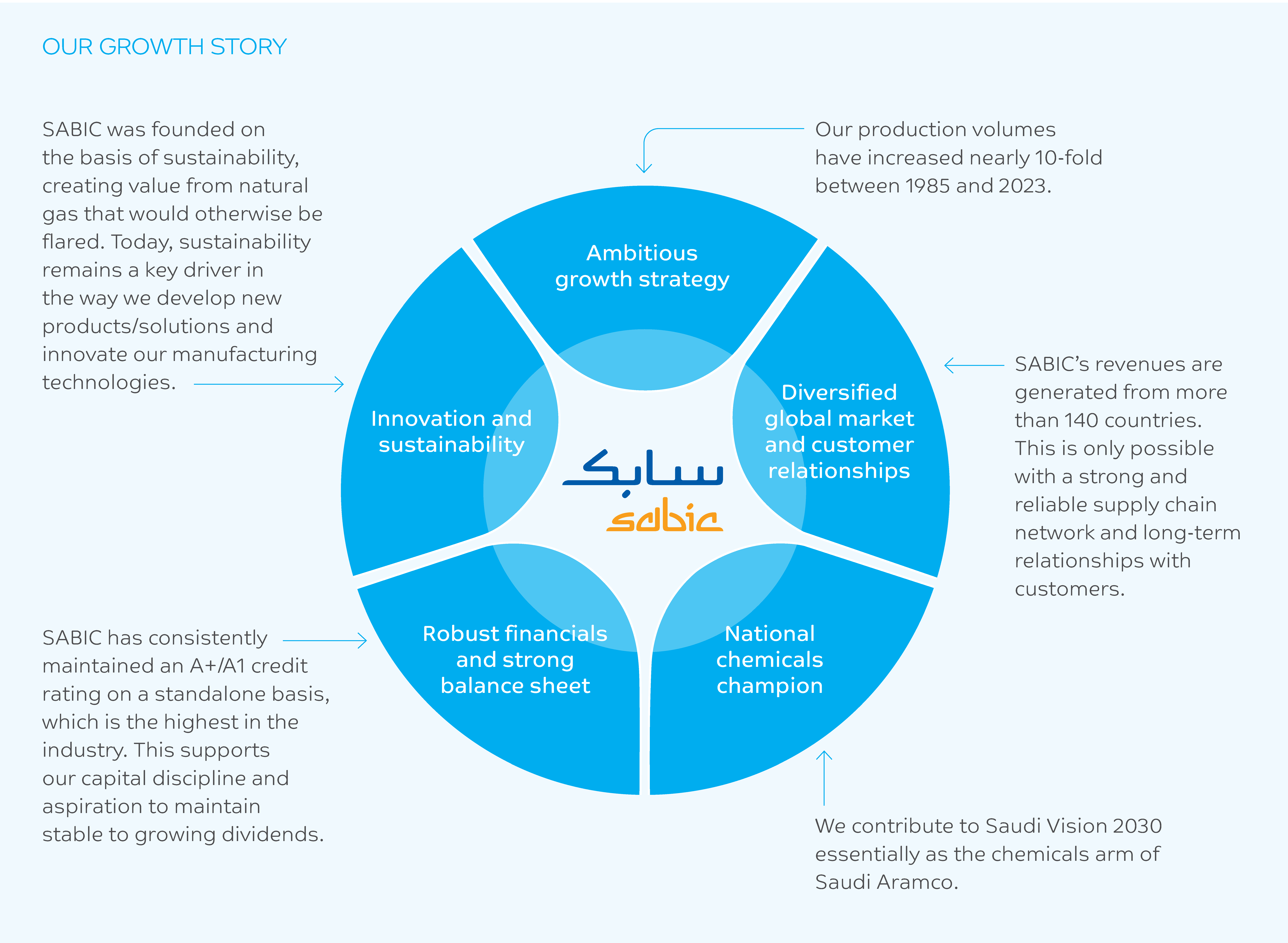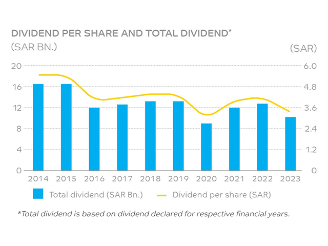 In 2023, the economy underwent a downtrend globally, driven by high-energy prices, high inflation, high interest rates, and weak demand. Our global business model, supply chain, and focus on asset reliability continued to be our key strengths during the last year. This provided a platform for growth and shareholder returns by generating a sustainable free cash flow throughout the cycle. There was also a strong focus on capital discipline, which helped to support high dividends and position SABIC well for future growth opportunities. Distributing competitive dividends to our shareholders remains a key priority for SABIC.