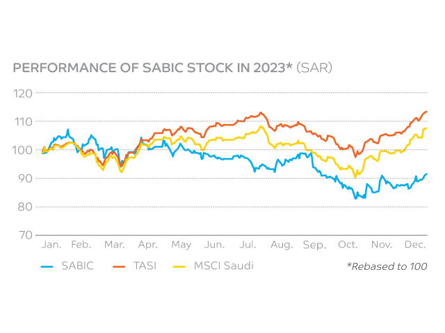 SABIC’s stock was one of the most traded on the Saudi Exchange in 2023 in terms of value, and the most traded in the materials sector.