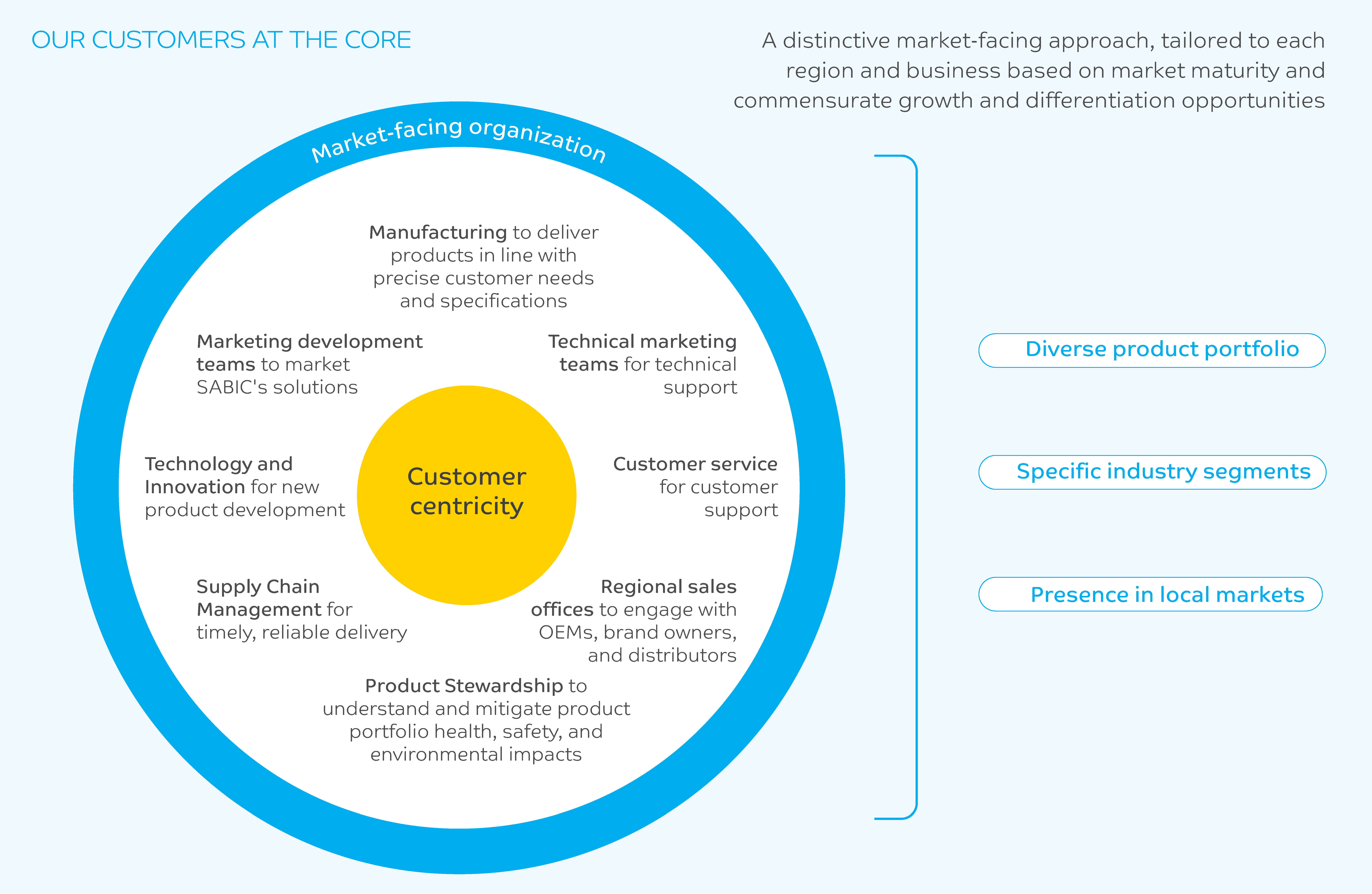 In 2023, a crucial area of focus was to initiate a company-wide reorganization and realignment directed at strengthening our relationships with our customers, with a focus on market development and sales to drive strategic customer growth. This reorganization will support our approach of working back from customer needs to create integrated offerings and develop long-term solutions and partnerships for market breakthroughs.