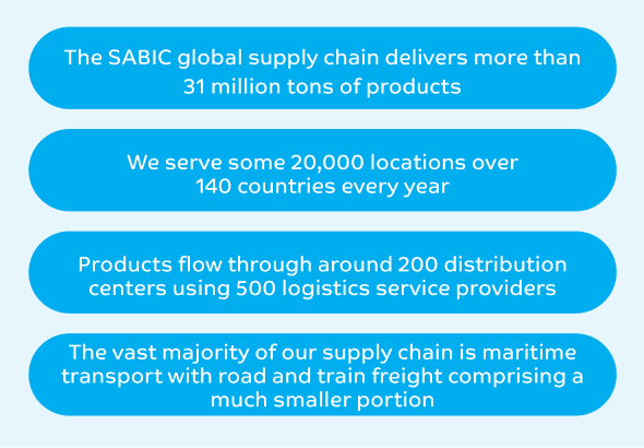 SABIC’s supply chain strategy aims to deliver to customers in a timely, reliable manner, emphasizing digitalization and sustainability.