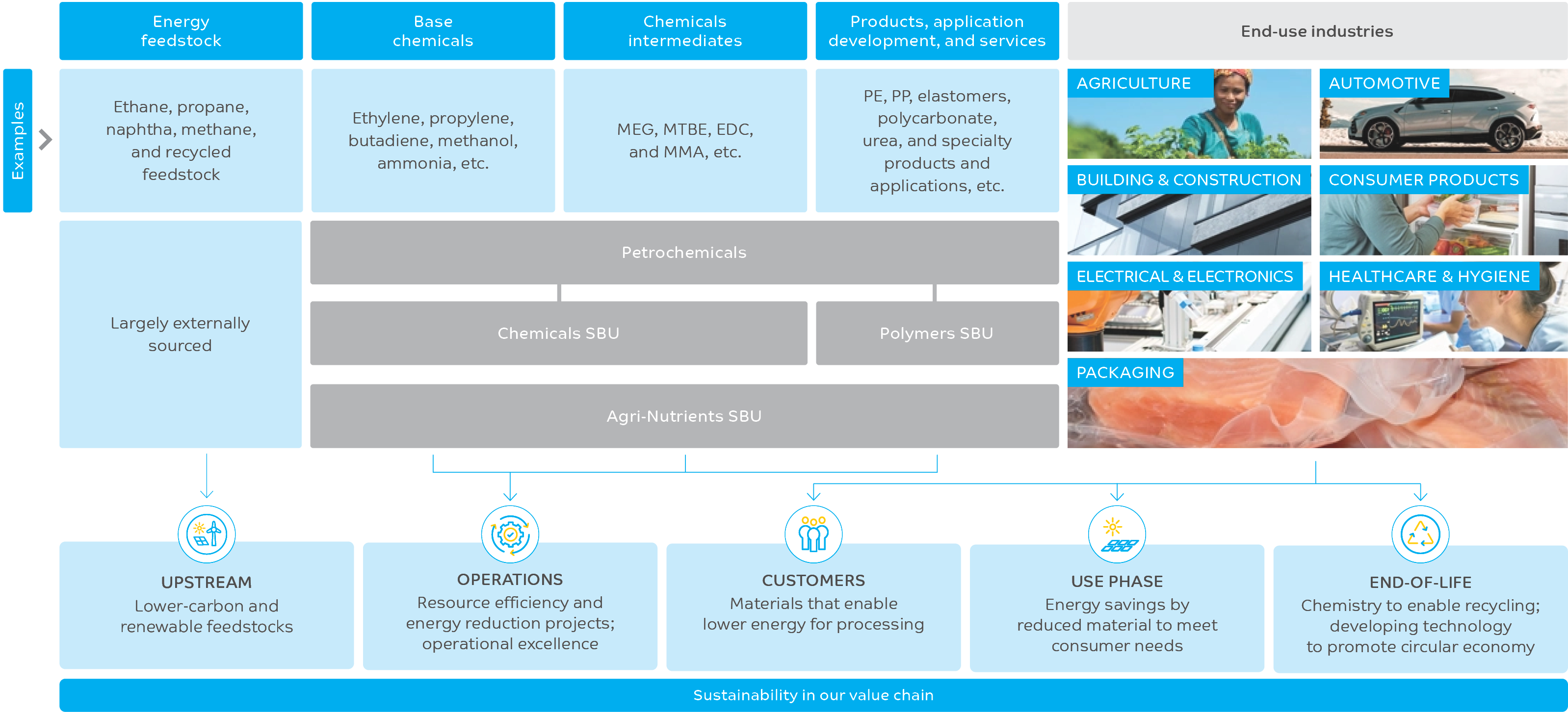 Following our ongoing transformation journey, our structure is now built around three Strategic Business Units (SBUs) – Chemicals, Polymers, and Agri-Nutrients – that operate across the chemical value chain, providing products, applications, and solutions to a wide range of end-use industries.