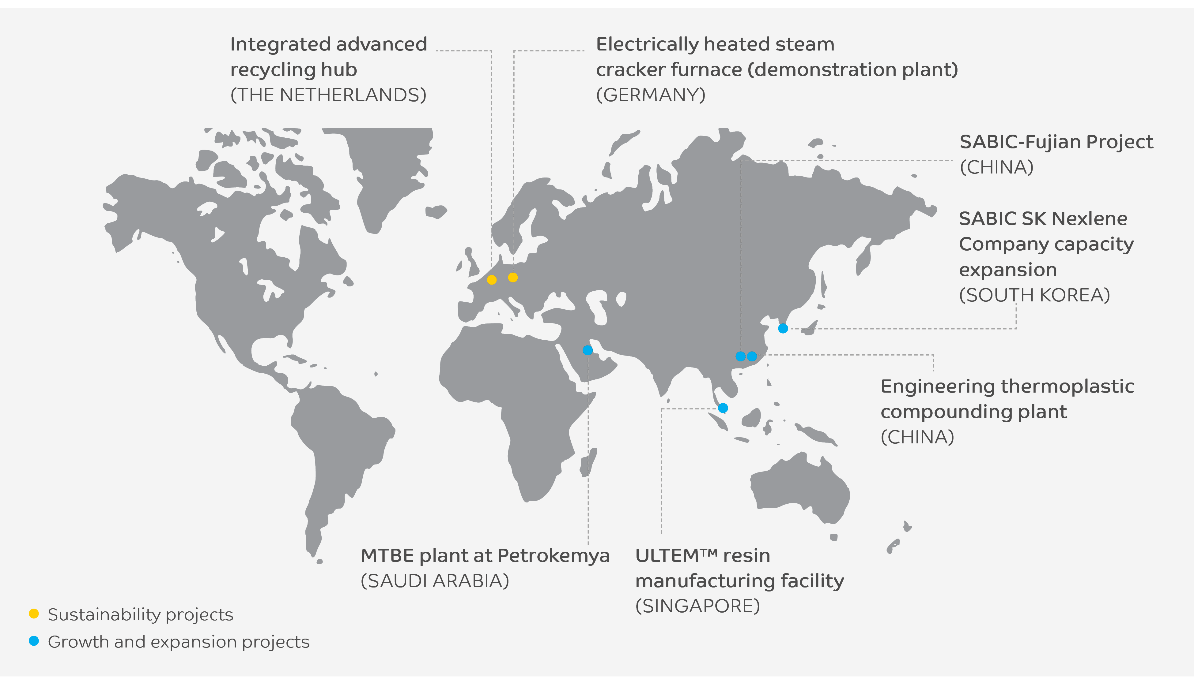 SABIC holds leading global positions in key polymers, particularly in polyolefins, engineering thermoplastics, and specialty materials. We are realizing our ambition as a global polymers leader by focusing on: