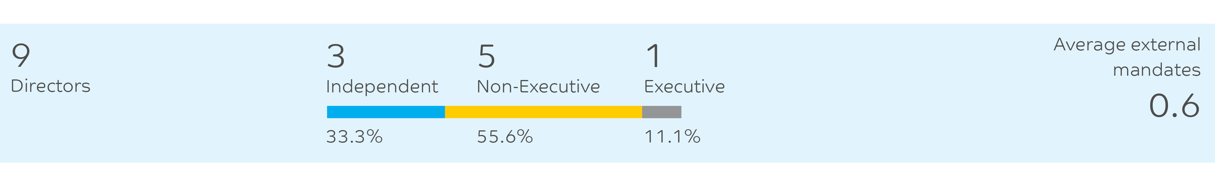 SABIC has a one-tier Board consisting of nine directors, the majority of whom are non-executives, Including independent directors. The SABIC Board has the right size and skill mix for managing the company's business affairs.