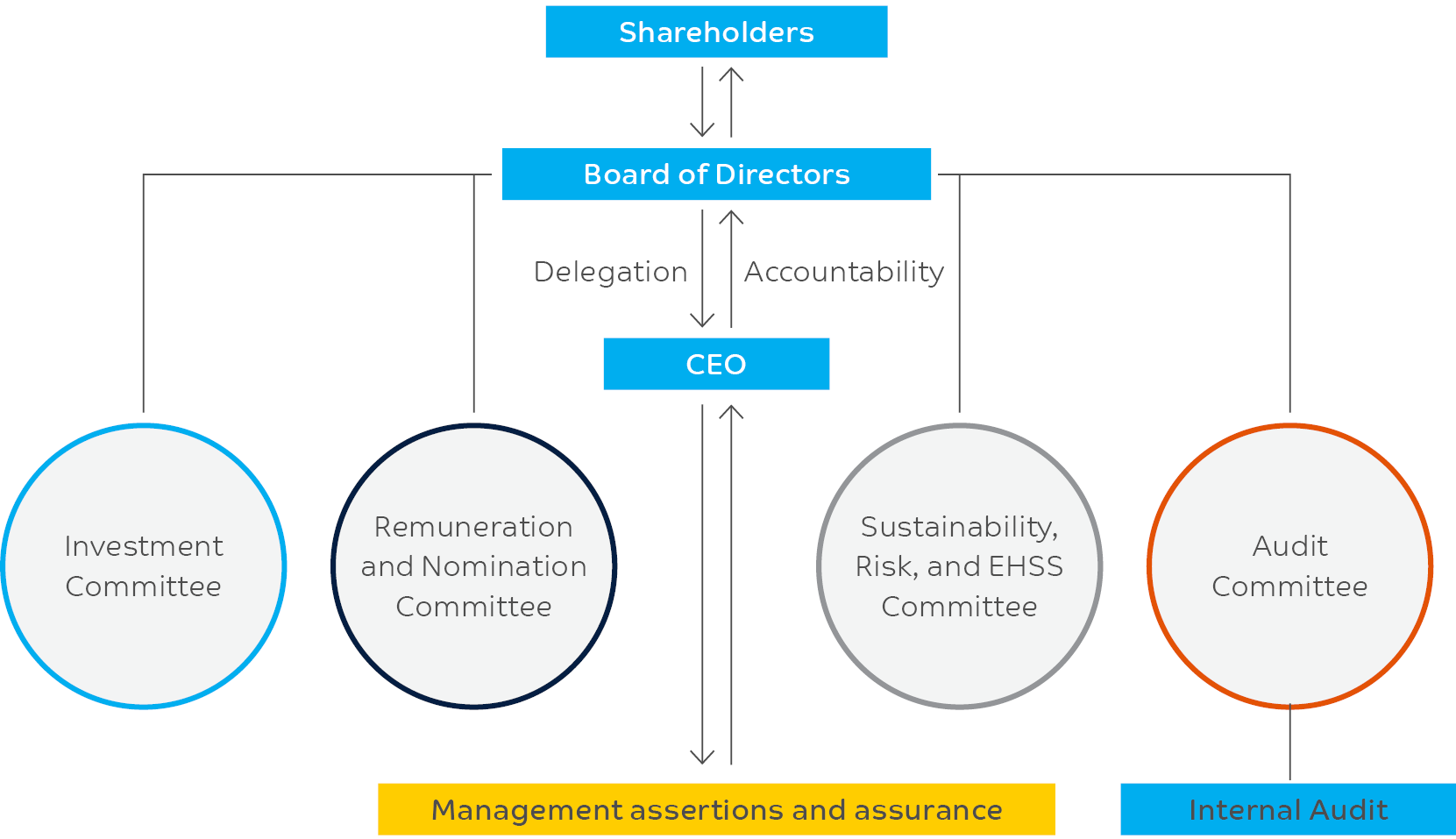 SABIC's Board holds ultimate responsibility for driving the company's long-term success. The Board Sustainability, Risk, and EHSS Committee (BSREC) supports the Board in overseeing performance across health, safety, process safety, security, environment, human rights, and corporate social responsibility, making recommendations to the Board as needed. Chaired by the CEO, the SABIC Executive Committee comprises Executive Vice Presidents of business units and corporate functions, including the Chief Sustainability Officer (CSO).