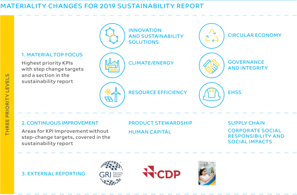 Materiality changes for 2019 SUSTAINABILITY REPORT