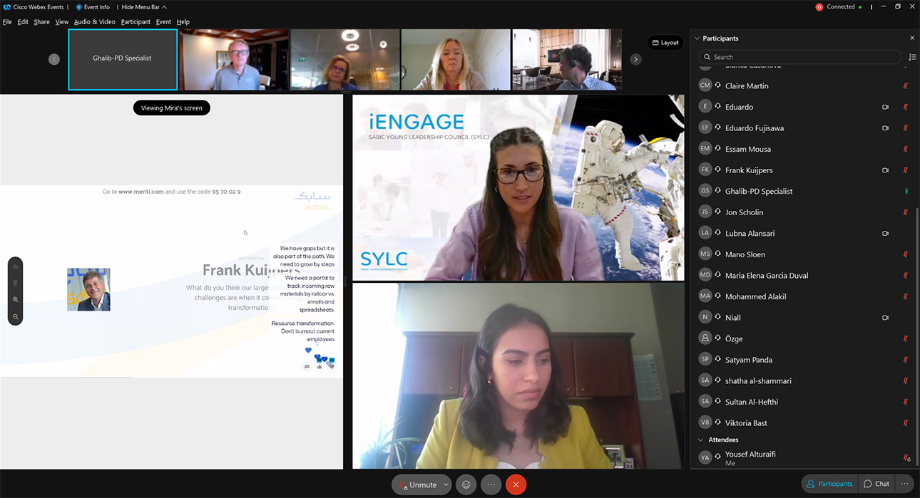 The SABIC Young Leadership Council (SYLC) moved forward in its mission of uniting our global talents to shape SABIC’s future by hosting its first global iENGAGE event. The virtual event brought together participants from 56 cities, 25 countries, and four regions, providing an opportunity to explore what matters to the Organization and its young leaders.