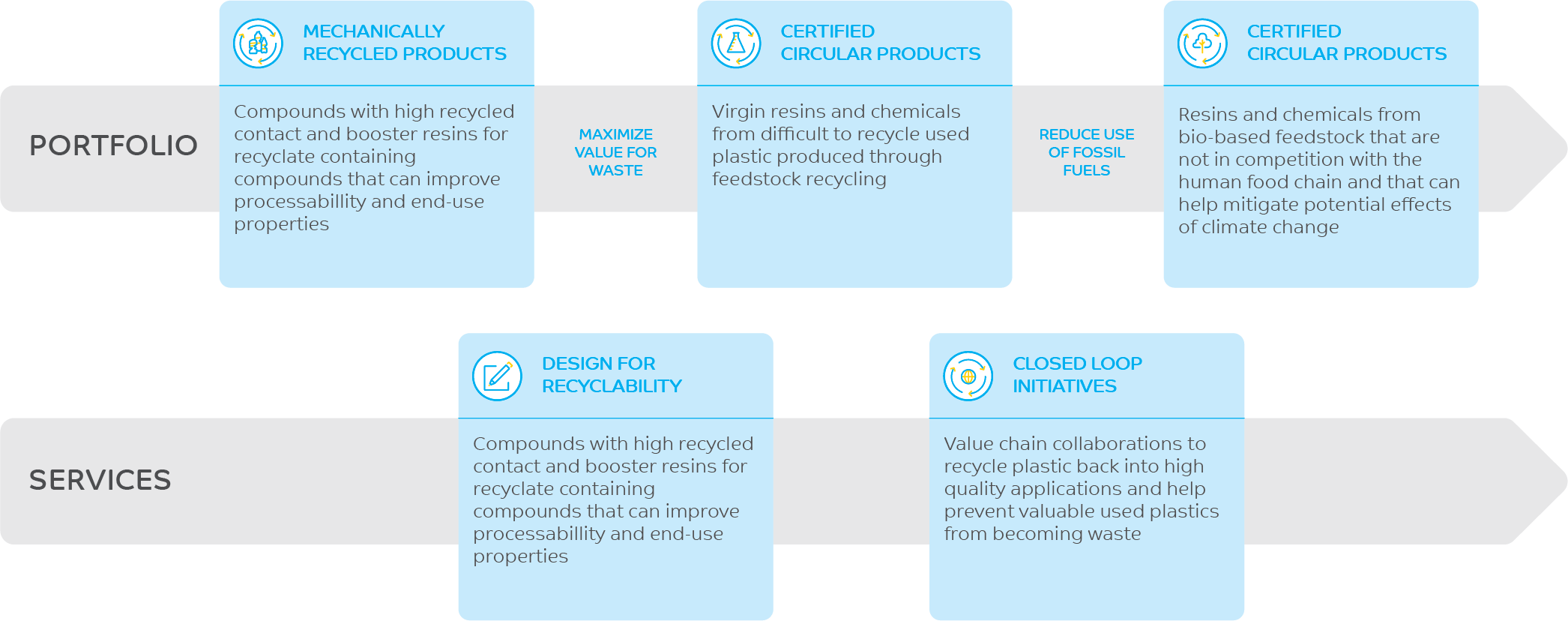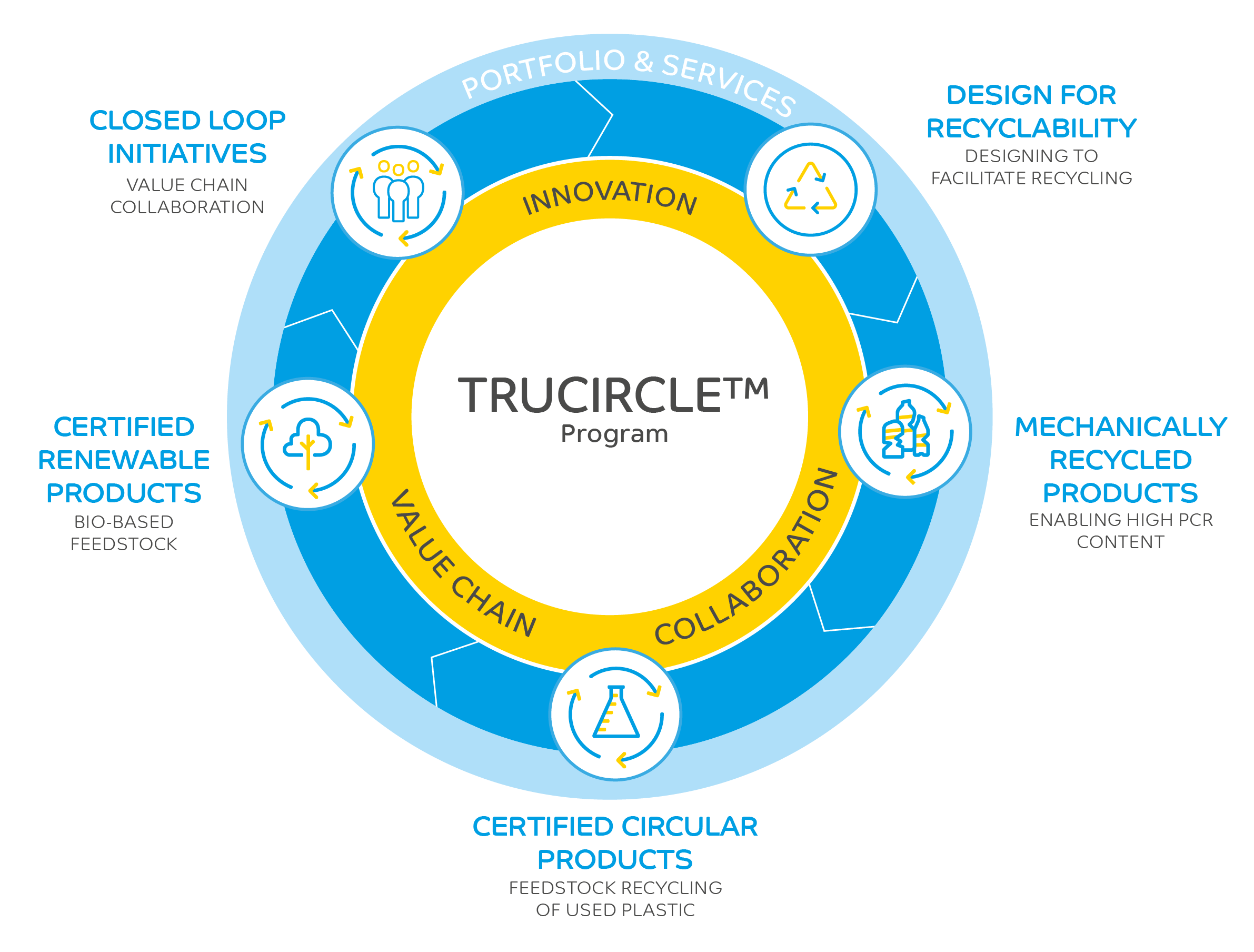 Through TRUCIRCLE™, SABIC has deepened our commitment to the circular economy and developed a framework through which we rethink how we do business. TRUCIRCLE™ comprises two overarching initiatives: Portfolio and Services.