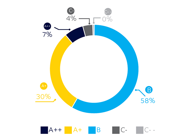 Products with strong sustainability-related benefits were categorized as A++ (advanced) and A+ (progressing) and comprised 37% of the screened revenues. Such products contribute to reducing customers’ carbon footprint or conserving resources at the application level, and help customers develop their own sustainable applications. To date, some key A++ and A+ products in our portfolio include foam insulation products, lightweight polymer solutions, and low carbon steel products.